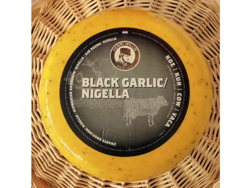 Prémiová gouda z rodinné sýrárny Henri Willig propojuje tradiční nizozemské sýrařství s moderním chuťovým zážitkem. Základem je jemná, hladká a krémová gouda, která je obohacena o fermentovaný černý česnek a Nigellu – černuchu setou, známou léčivou rostlinu s lehce kořenitou, jemně oříškovou chutí.