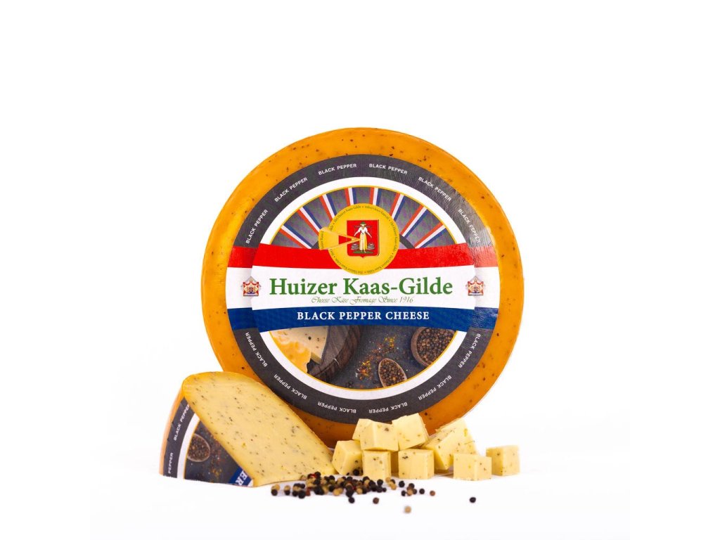 Huizer Gouda s černým pepřem je ideální volbou pro zákazníky, kteří chtějí klasickou goudu s výraznějším, lehce pikantním twistem.