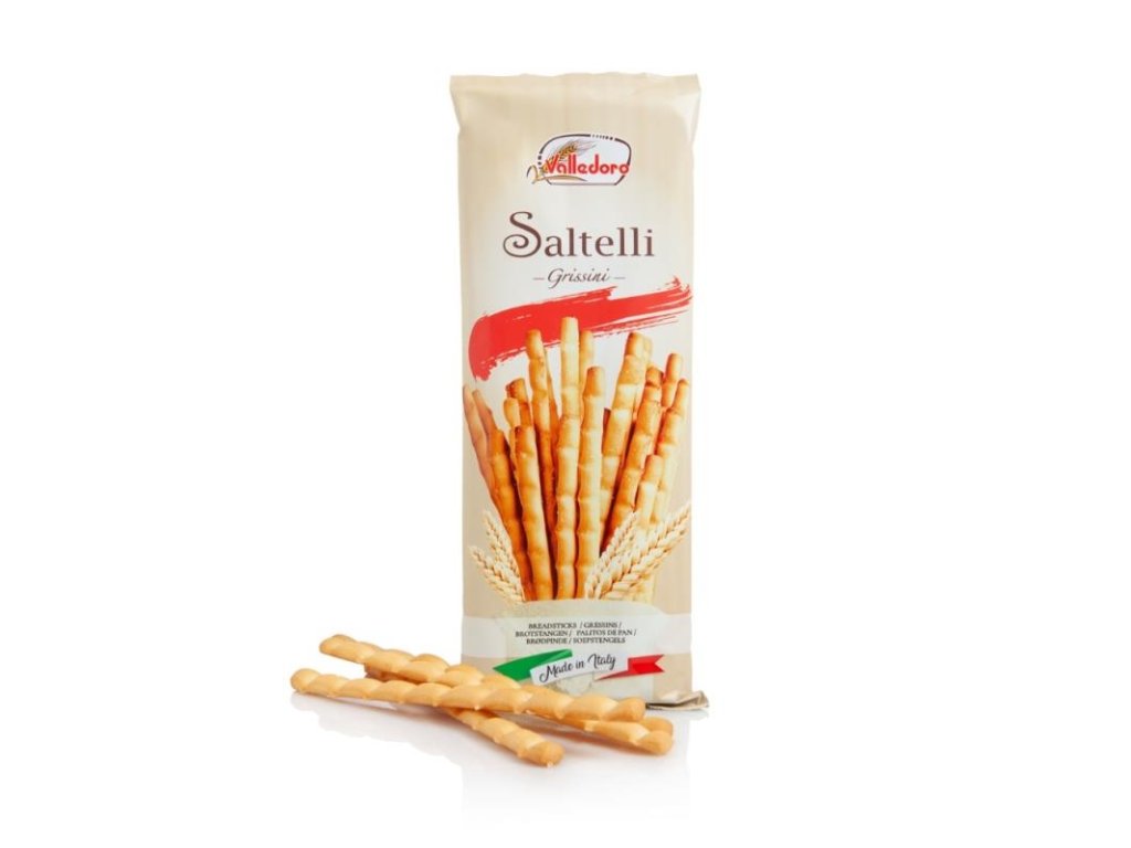 Saltelli od značky Valledoro jsou grissini, které povýšily jednoduchost na umění. Každá tyčinka je jemně posypaná mořskou solí, což vytváří dokonalý kontrast mezi jemným těstem a výrazně slaným zakousnutím. Mají extra křupavou strukturu, díky které neodoláte dalšímu a dalšímu soustu. Skvěle se hodí ke krémovým sýrům, výrazným uzeninám nebo jen tak do ruky k večernímu vínu. Italská jednoduchost, která chutná naprosto dokonale – protože i v drobnostech může být skryto potěšení.