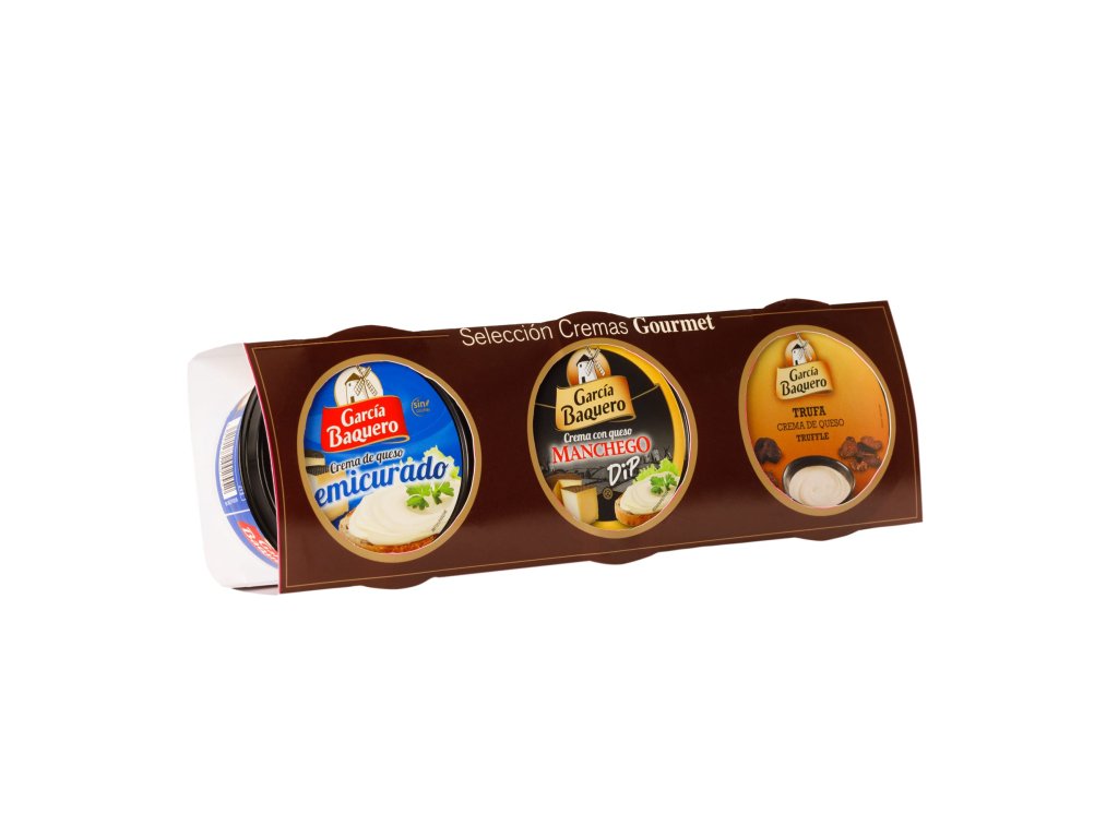 García Baquero Selección Cremas Gourmet 3×125 g je exkluzivní sada tří tavených sýrů, vyráběná v Castilla–La Mancha a Madridu, kde značka García Baquero patří mezi nejrespektovanější producenty španělských sýrů od roku 1962. Sada obsahuje: