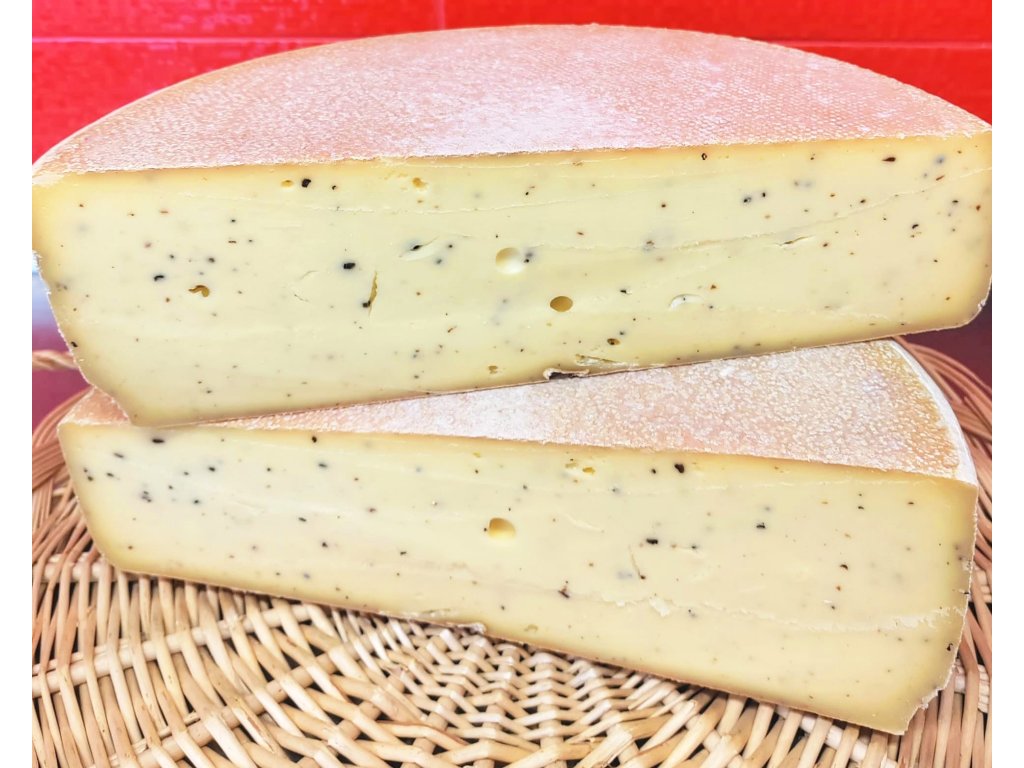 Dopřejte si to nejlepší ze švýcarských pastvin v kombinaci s „černým diamantem“ kuchyně. Náš švýcarský horský sýr zraje v čistém horském vzduchu, díky čemuž získává svou charakteristickou pevnou texturu a jemně oříškový základ. Ten je mistrovsky doplněn aromatickými černými lanýži, které sýru dodávají nezaměnitelné hluboké aroma a luxusní chuťový profil.