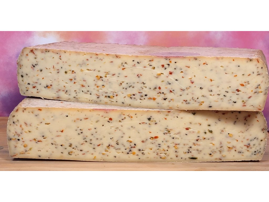 Švýcarský Raclette "Ohnivý čert" (Feuerteufel) je polotvrdý sýr z nepasterizovaného kravského mléka, obohacený o pikantní koření, které mu dodává výraznou a ohnivou chuť. Díky své vynikající tavitelnosti je ideální pro přípravu tradičního raclette pokrmu, kde se roztavený sýr podává s vařenými bramborami, nakládanou zeleninou či pečivem. Jeho pikantní charakter ocení milovníci výrazných chutí, kteří hledají netradiční variaci klasického švýcarského sýra. Pro dokonalý gurmánský zážitek doporučujeme kombinovat s lehkými bílými víny, jako je Ryzlink či Sauvignon Blanc.